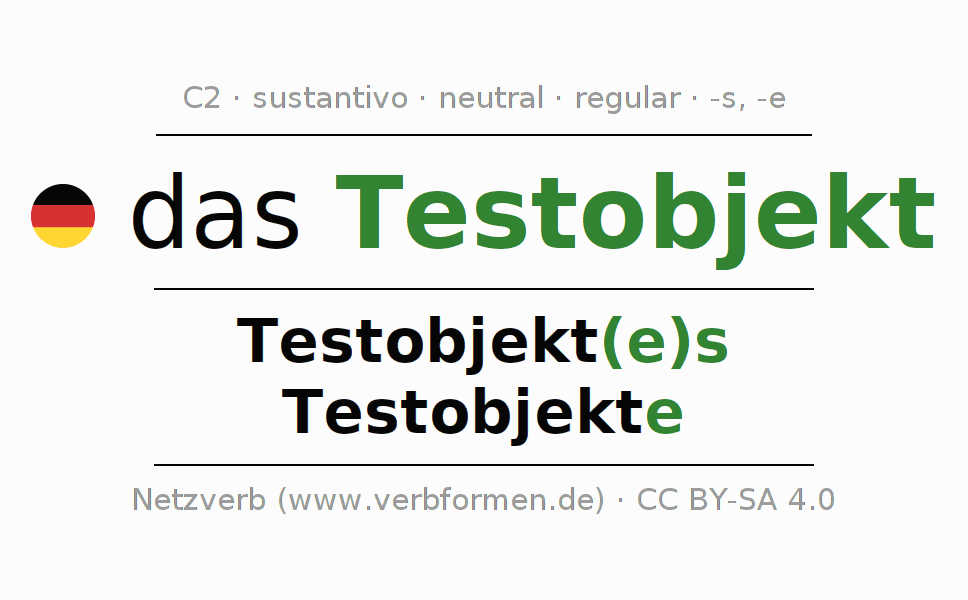 - Singular: das Testobjekt, des Testobjekt(e)s, dem Testobjekt(e), das Testobjekt