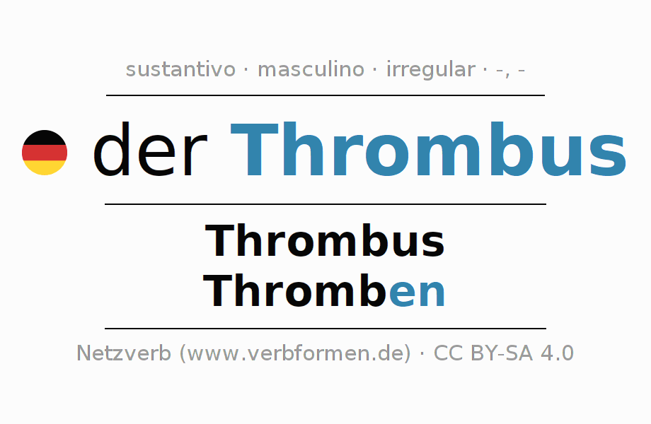 - Singular: der Thrombus, des Thrombus, dem Thrombus, den Thrombus