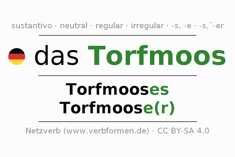 - Singular: das Torfmoos, des Torfmooses, dem Torfmoos(e), das Torfmoos