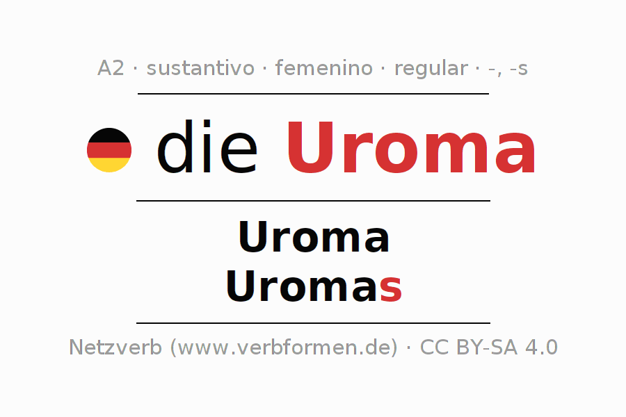 - Plural: die Uromas, der Uromas, den Uromas, die Uromas