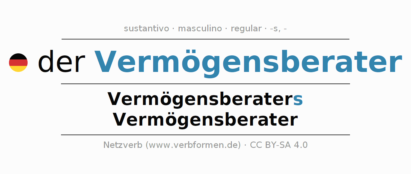 - Singular: der Vermögensberater, des Vermögensberaters, dem Vermögensberater, den Vermögensberater