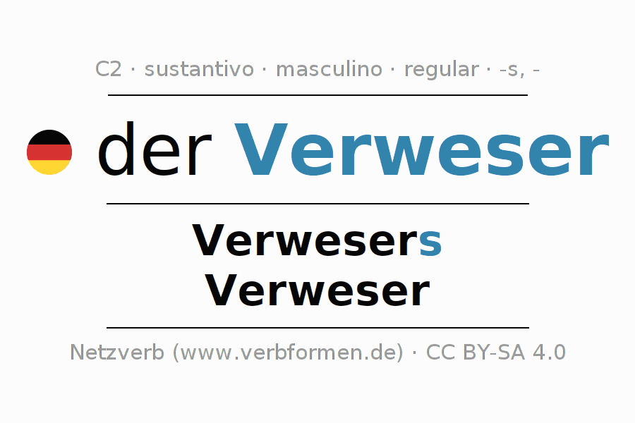 Resumen de todas las declinaciones del sustantivo Verweser en todos los casos gramaticales.