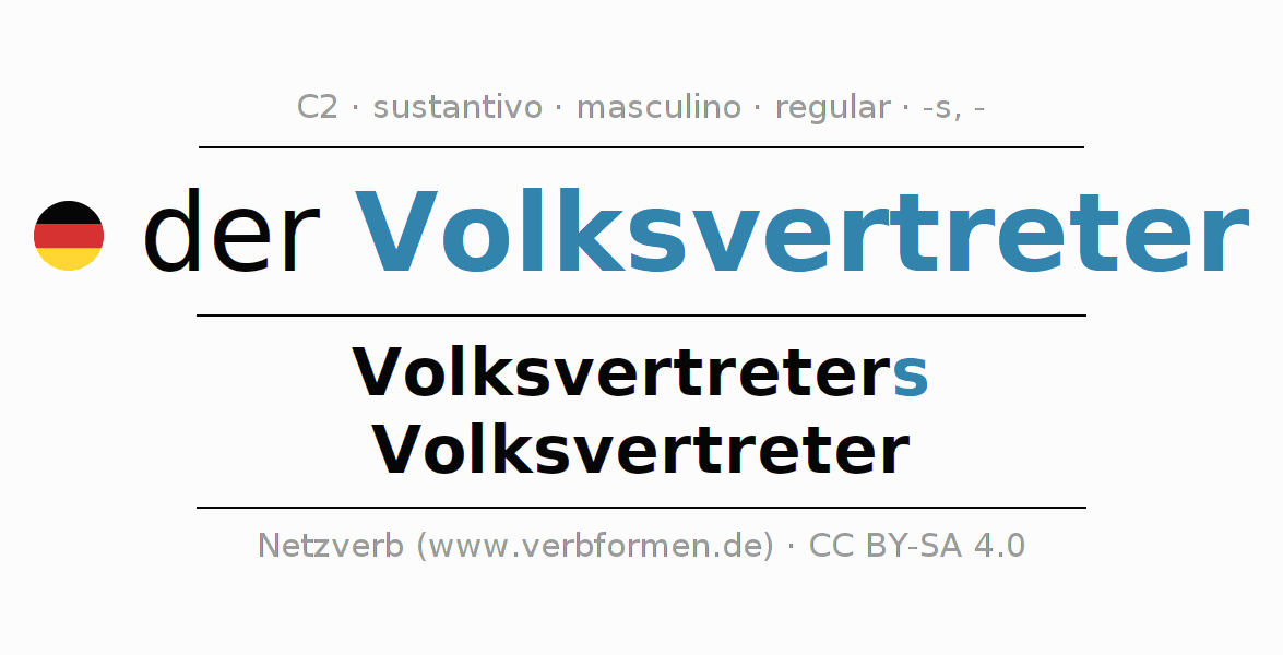 - Plural: die Volksvertreter, der Volksvertreter, den Volksvertretern, die Volksvertreter