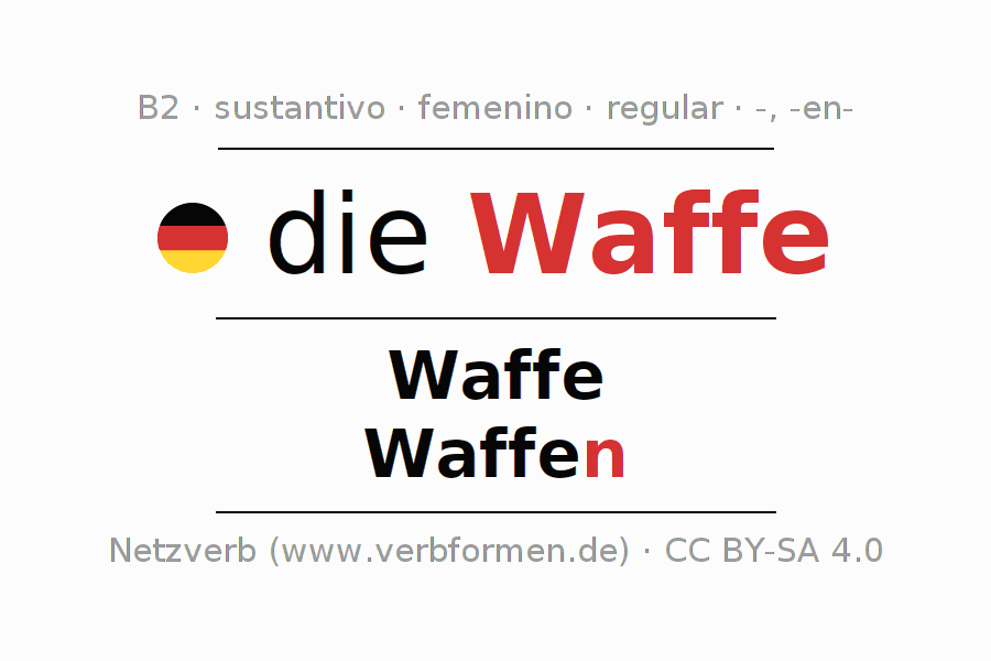 - Singular: die Waffe, der Waffe, der Waffe, die Waffe