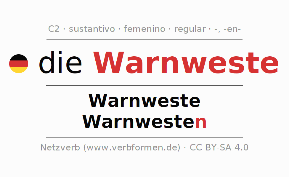 - Plural: die Warnwesten, der Warnwesten, den Warnwesten, die Warnwesten
