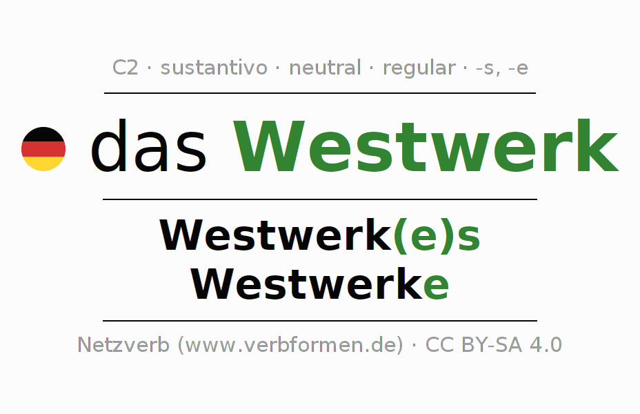 - Singular: das Westwerk, des Westwerk(e)s, dem Westwerk(e), das Westwerk